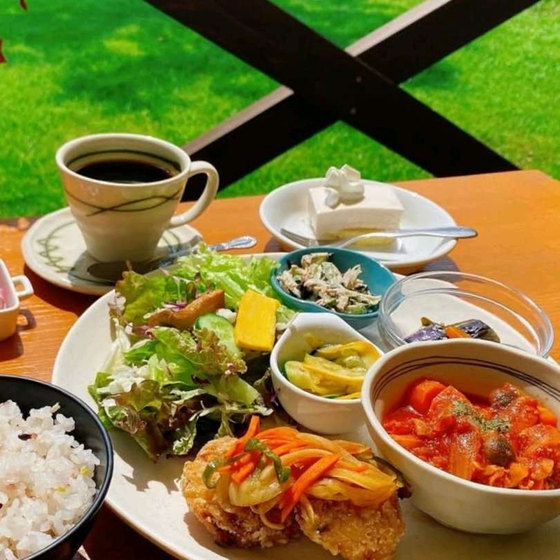 공원 내에서 개방적인 카페. 계절 신선한 채소를 즐길 수 있는 런치를 제공합니다.